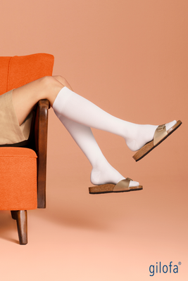 Tragen Sie die Strümpfe durchgehend – sie unterstützen Ihre Beine kontinuierlich.