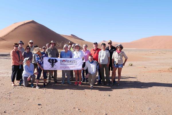 20 BoTraveller entdeckten mit Bo die unendliche Weite des Landes zwischen Atlantik und Kalahari Wüste. Diese Reise führt Sie in den Südwesten Afrikas. In ein Land, das Sie mit seiner bizarren Schönheit, den himmelhohen Dünen, schroffen Gebirgszügen und endlosen Weiten verzaubert hat. Die Reisegruppe erlebte auch die vielfältige Tier- und Pflanzenwelt Namibias des berühmten Etosha Nationalparks,